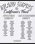 This tee was designed to highlight the 2 counties that are the heart of the Inland Empire while showcasing every city that are apart of this diverse region. Whether if you’re from Riverside or San Bernardino county this shirt is a symbol of community and pride celebrating the places and people that bring it all together.