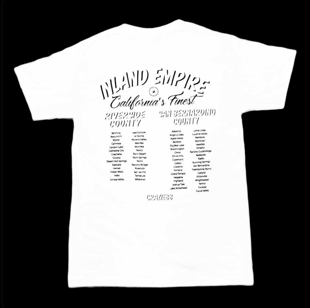 This tee was designed to highlight the 2 counties that are the heart of the Inland Empire while showcasing every city that are apart of this diverse region. Whether if you’re from Riverside or San Bernardino county this shirt is a symbol of community and pride celebrating the places and people that bring it all together.